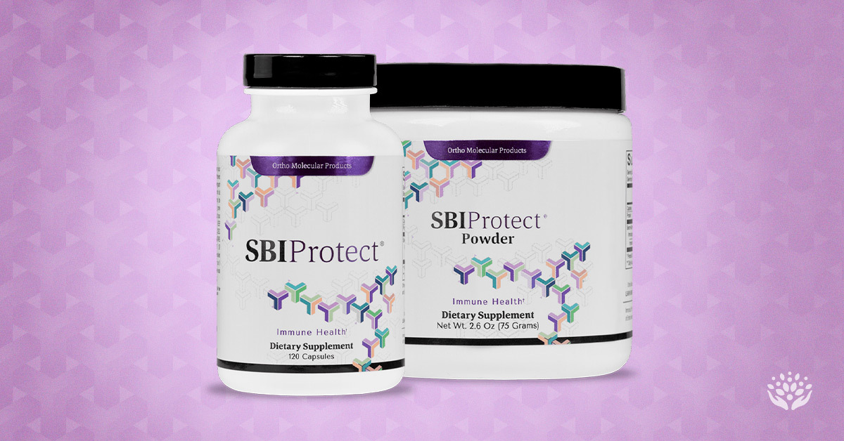 SBI Protect — created by Ortho Molecular Products — is a dairy-free supplement that contains serum-derived bovine immunoglobulin concentrate (SBIC) powder.