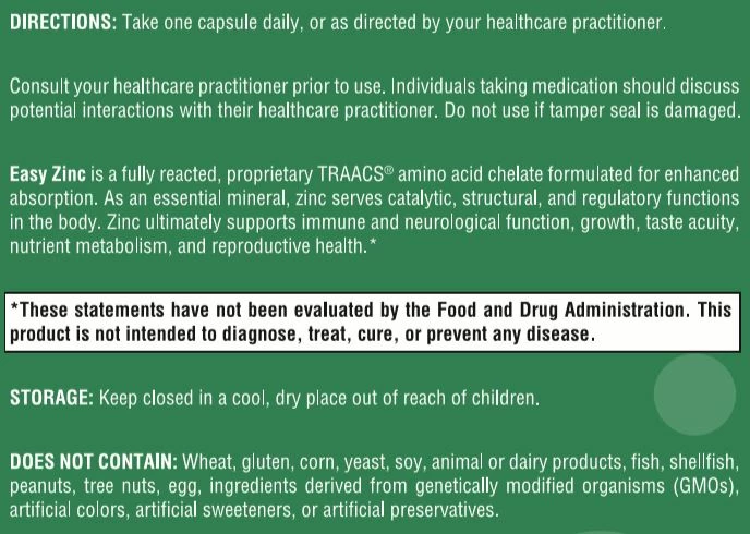 Easy Zinc is a popular and impactful alternative with a fully chelated, absorbable formulation in a convenient one-a-day capsule. Our patented TRAACs process maximizes mineral absorption, and we prioritize transparency and allergen-free ingredients.