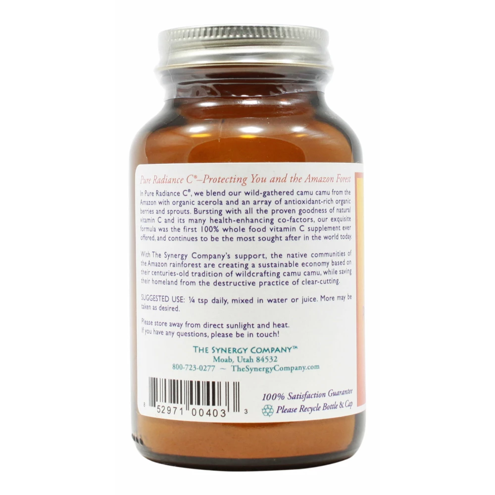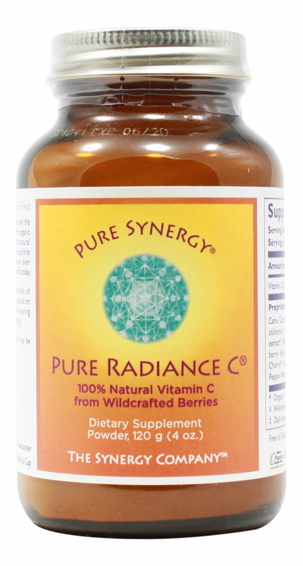 Pure Radiance C combines wild-harvested Camu Camu, organic acerola, and antioxidant-rich organic berries and fruits to offer a natural form of Vitamin C. It is free of corn-derived ascorbic acid, and contains the health-enhancing phytonutrients and co-factors that accompany whole-food sourced Vitamin C, offering a pure and whole supplement as nature intended.
