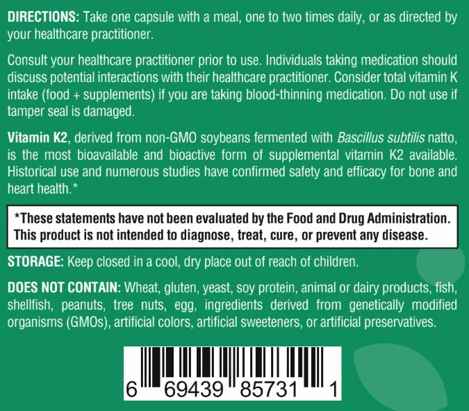 Vitamin K2 as MK-7 is an essential nutrient responsible for maintaining bones, teeth, and cardiovascular health. It plays a crucial role in the absorption and utilization of calcium in the body, helping to prevent calcification of the arteries and other soft tissues. Our potent K2 is non-GMO, sourced from organic soybeans, and pharmacist-formulated for optimal nutrient absorption.