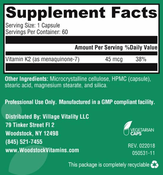 Woodstock Vitamins uses only the highest quality, pure Vitamin K2 in their supplement, sourced from non-GMO soybeans. Our vitamin K2 is also manufactured in a GMP-compliant facility and is thoroughly tested for purity and integrity.