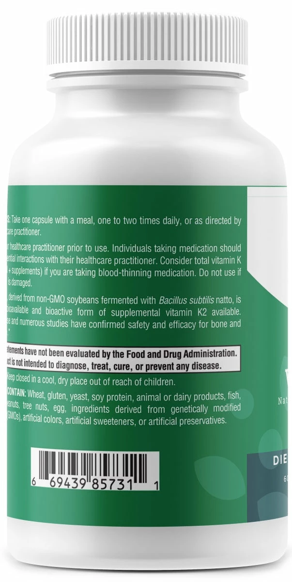 Inhibit arterial calcification while regulating calcium with our potent vitamin K2 supplement. Support strong bones and teeth with non-GMO sourced K2 for maximum bioavailability and utilization. Vitamin K2 promotes healthy cell growth, brain development, and cognitive functioning. Without it, we risk poor calcium absorption and brittle bones.